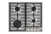 Газовая варочная панель, ступенчаные регуляторы StepFlame, на нержавеющей стали, ширина 60см, чугунные держатели, газконтроль и автоматический автоподжиг, WOK конфорка, 4 конфорки.