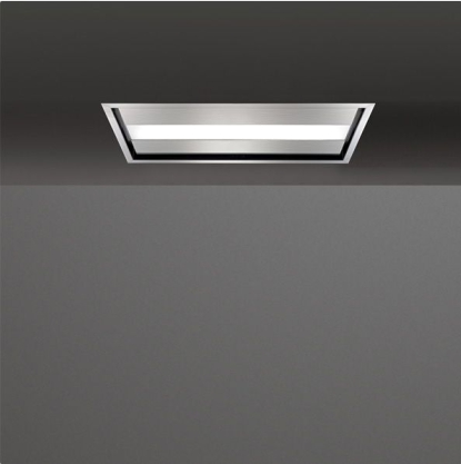 Островная вытяжка шириной 90 см из нержавеющей стали AISI 304 и закаленного стекла. Потолочный монтаж. Дистанционное управление (пульт в комплекте).