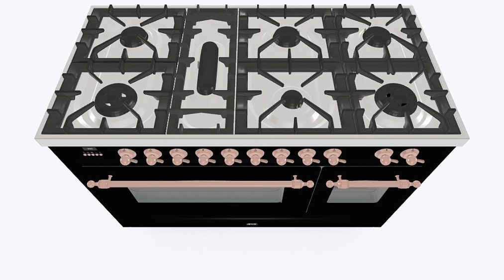 • Тип конфорок: 7 газовых, горелка для рыбной кастрюли, двухконторная конфорка DUAL