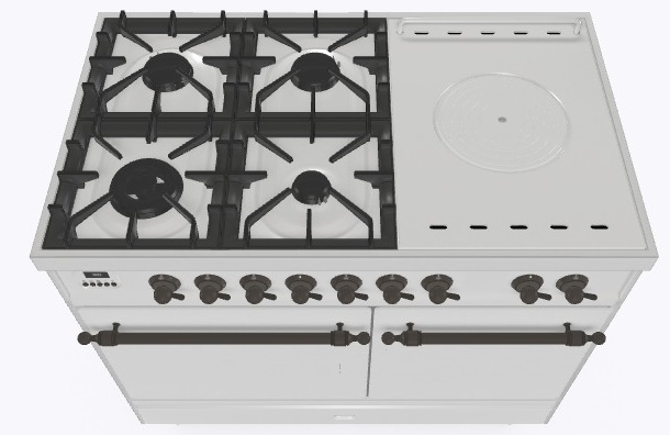 • Тип конфорок: 4 газовые конфорки, WOK конфорка, жарочная поверхность Coup de Feu